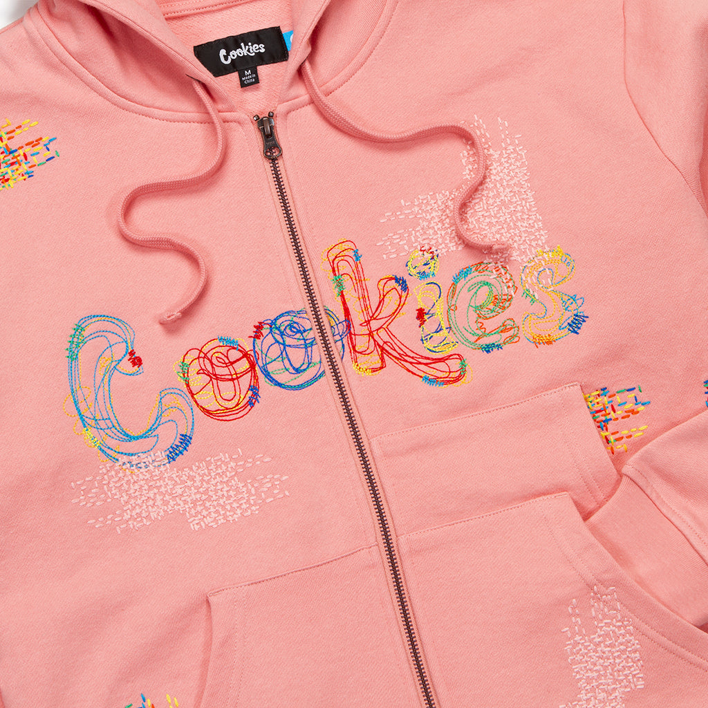 Anthem Fleece Zip Hoodie with Allover Embroidered Stitch Patchwork & Cookies Chest Logo.