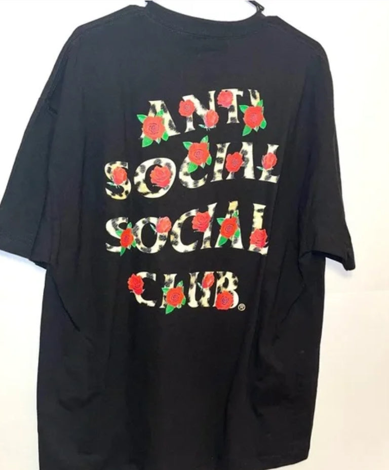 Anti Social Social Club ASSC leopard print and red roses t-shirt.
