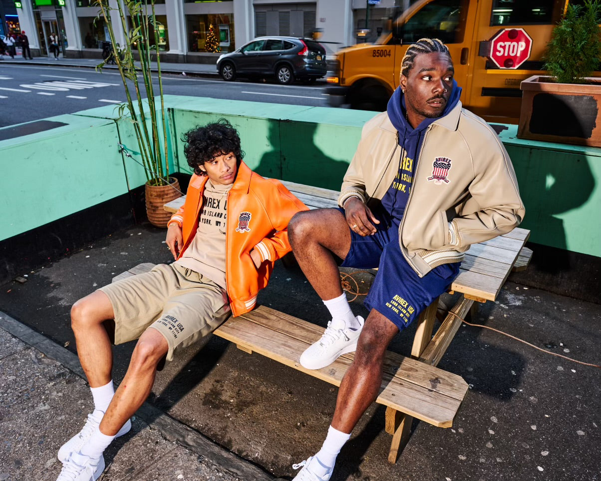 Avirex, the NY-based iconic luxury outerwear brand, was reintroduced in 2021. Inspired by the original A1 bomber, this jacket features a varsity-style with a chest patch and spread collar.