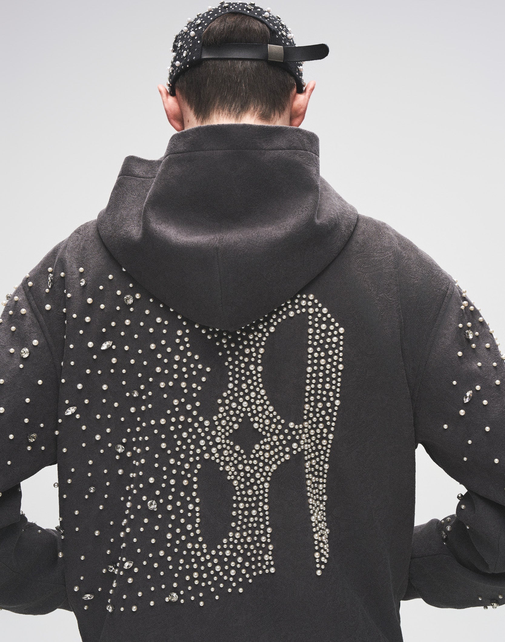 - Hand-sewn with diamond and pearl embellishments for an elevated, refined look