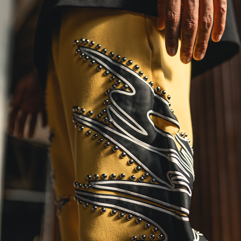 CAMPUS - Misfit Stud Terry Flare Sweatpants (Yellow) - CG-F25-18