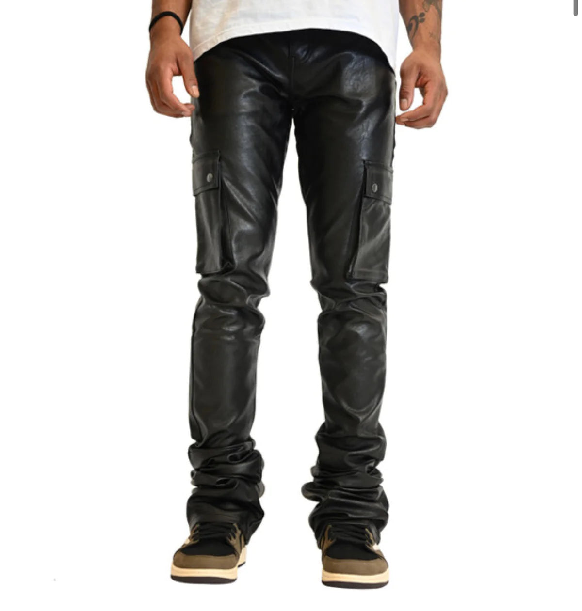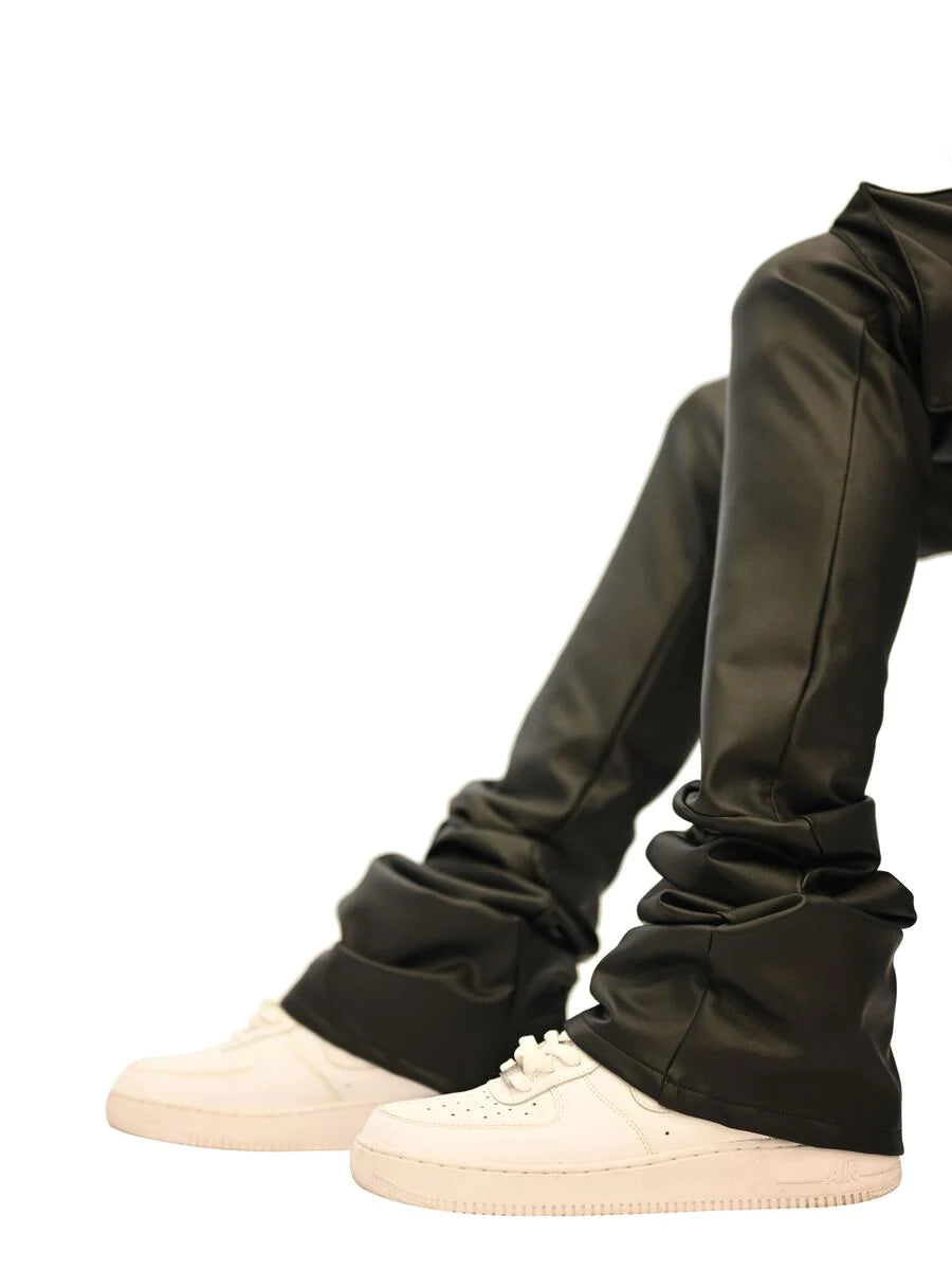DOCTRINE DENIM CARTER SUPER STACKED PANTS (BLACK VEGAN LEATHER) DB0022