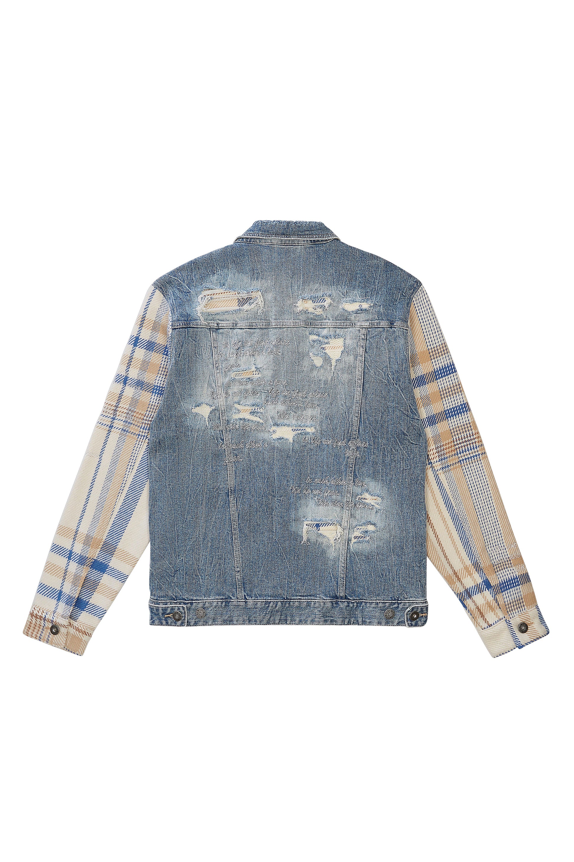 Embroidered Plaid Backed Denim Jacket - Lowell Blue-JJ23619