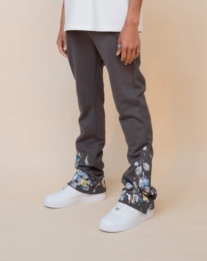 EPTM PAINT SNAP FLARED PANTS - GREY