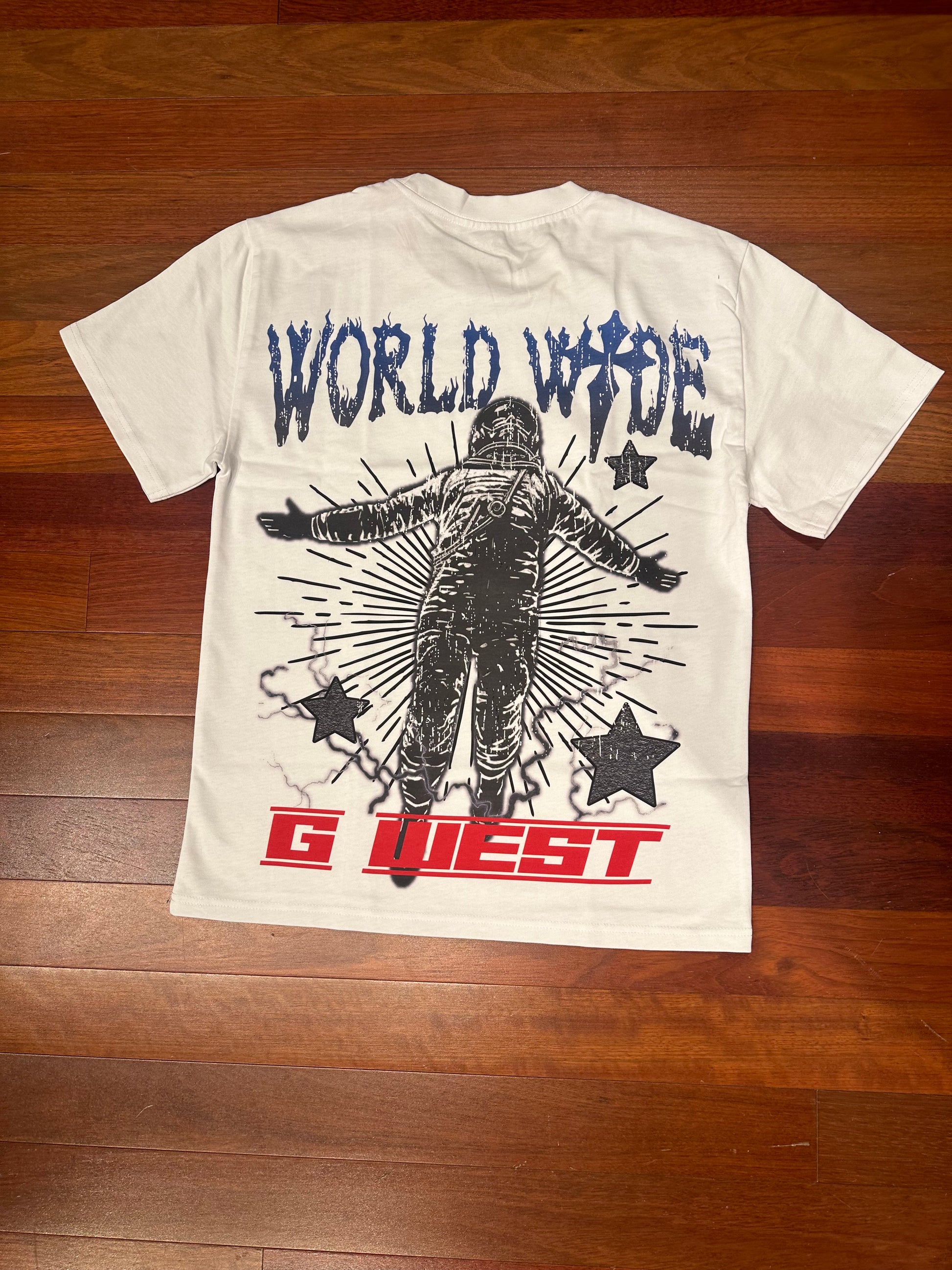 G WEST SET : G WEST WORLD WIDE STAR CREAM T SHIRT -GWPPT9021