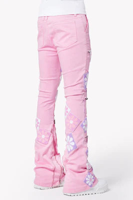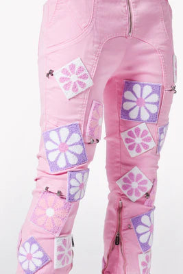 Embrace a playful yet edgy vibe with the GUAPI French Rose Flowers Denim. These unique pink jeans are crafted with eye-catching floral patches in soft lavender and white, adding a bold pop of color and texture to your look. Designed with versatility in mind, these jeans feature a two-layer zip system along the sides, allowing you to customize your style effortlessly. Wear them with the zippers open for a flared silhouette, or zip them up for a sleek, stacked fit that hugs the leg. With its vibrant design and adaptable structure, the French Rose Flowers Denim makes a statement for any occasion.