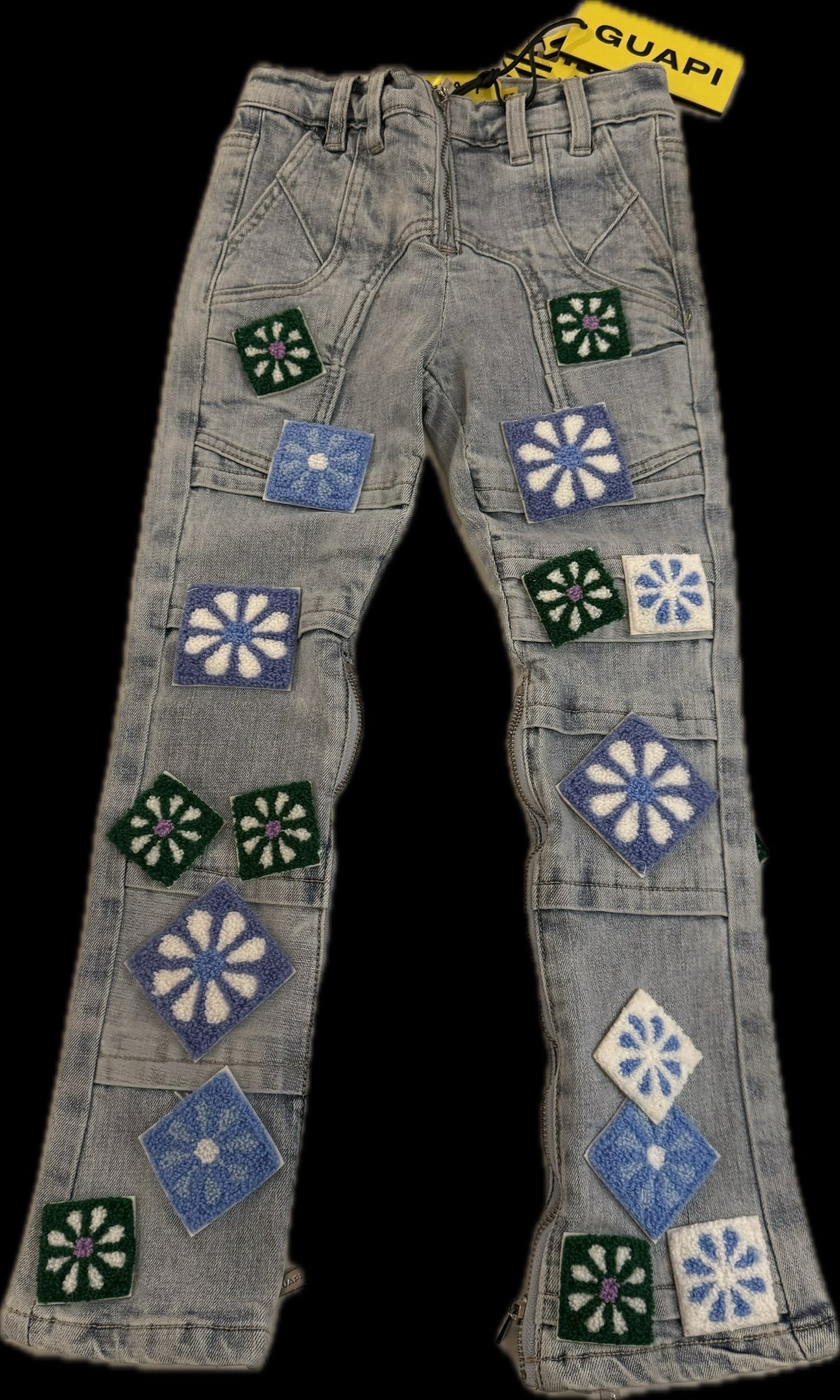 GUAPI AQUA BLUE FLOWERS KIDS DENIM JEANS