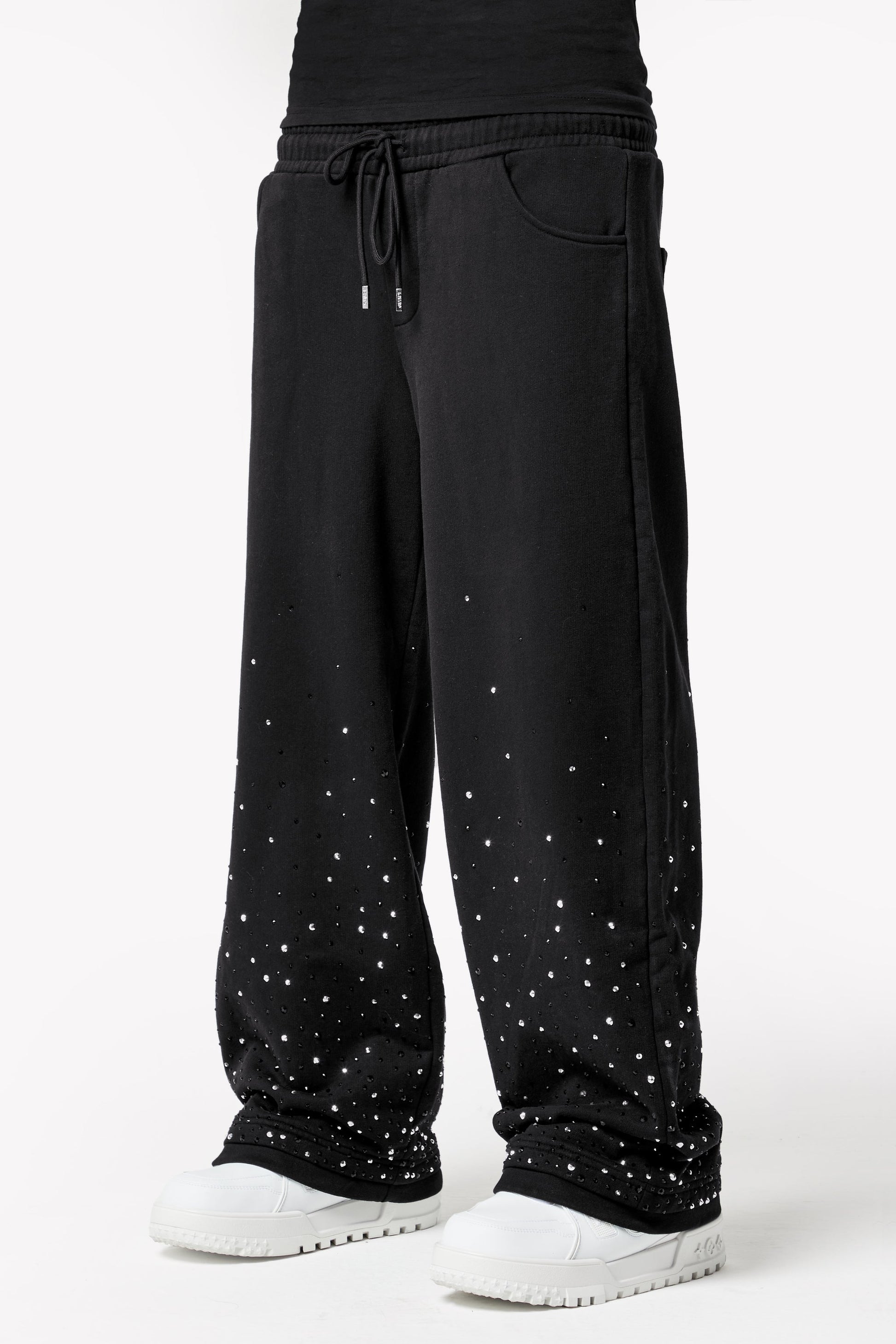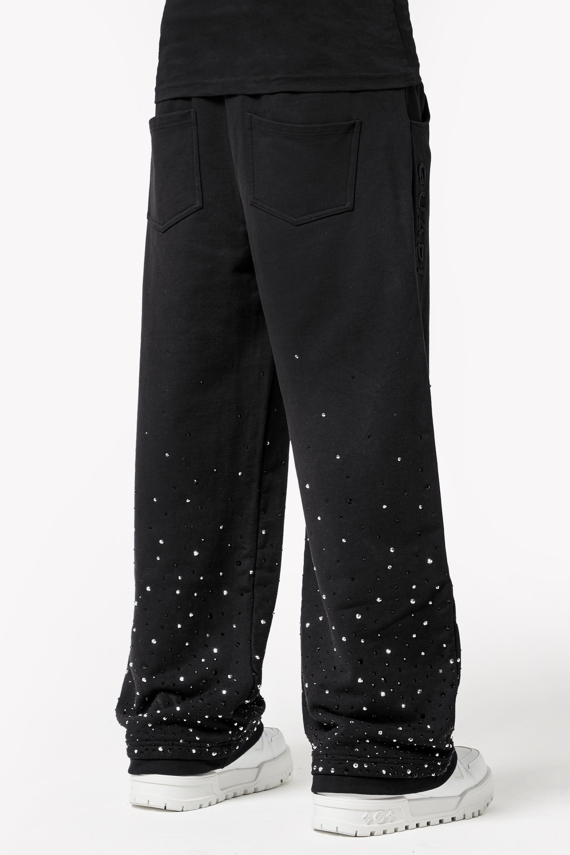 GUAPI - OBSIDIAN BLACK EMBELLISHED FLARED SWEAT PANTS