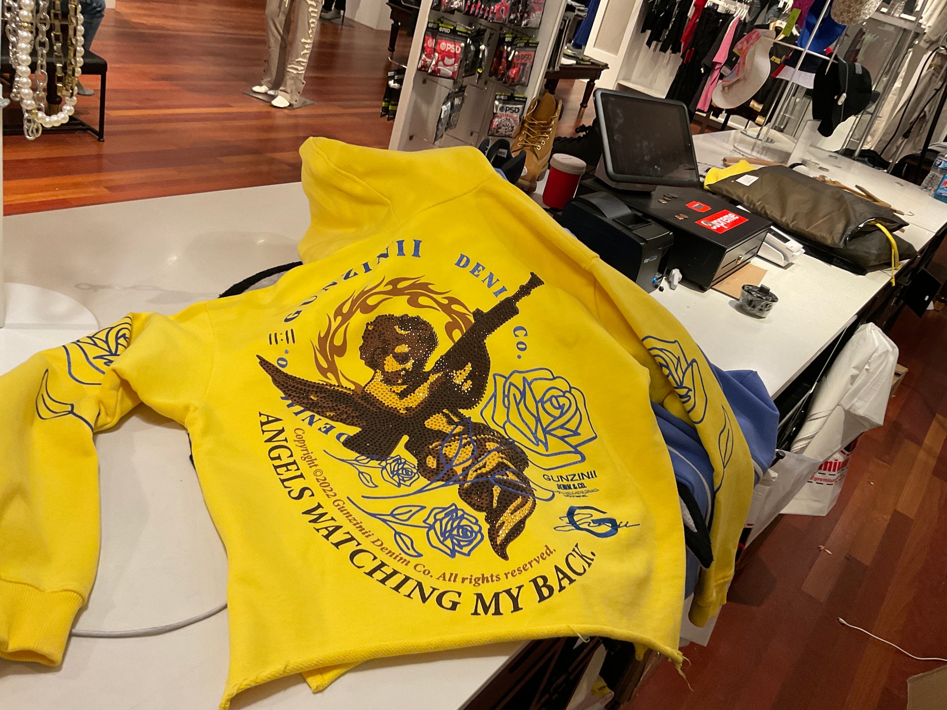 Make your mark in the new on this new Hoodie from yours truly. This everyday Hoodie features a Drawstring, Long sleeves, a relaxed fit, and custom graphics printed front & back.