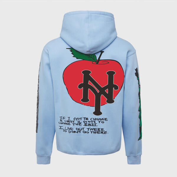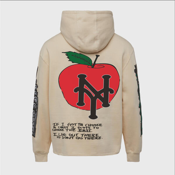 The Iconic "Cali to NYC" hoodie features a 100% cotton fabrication with iconic landmarks from both the east and west coast including the "Hollywood Sign." All art is puff print to add a textured, lux finish.