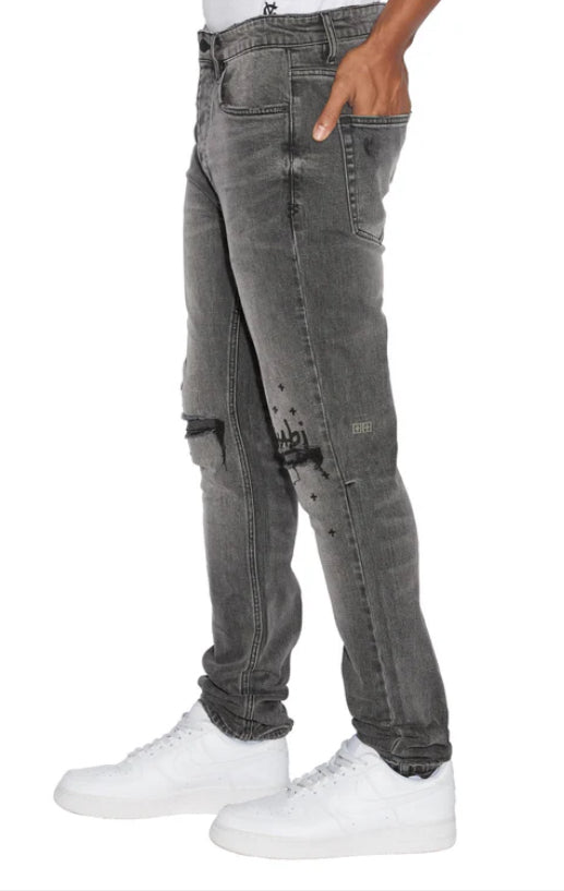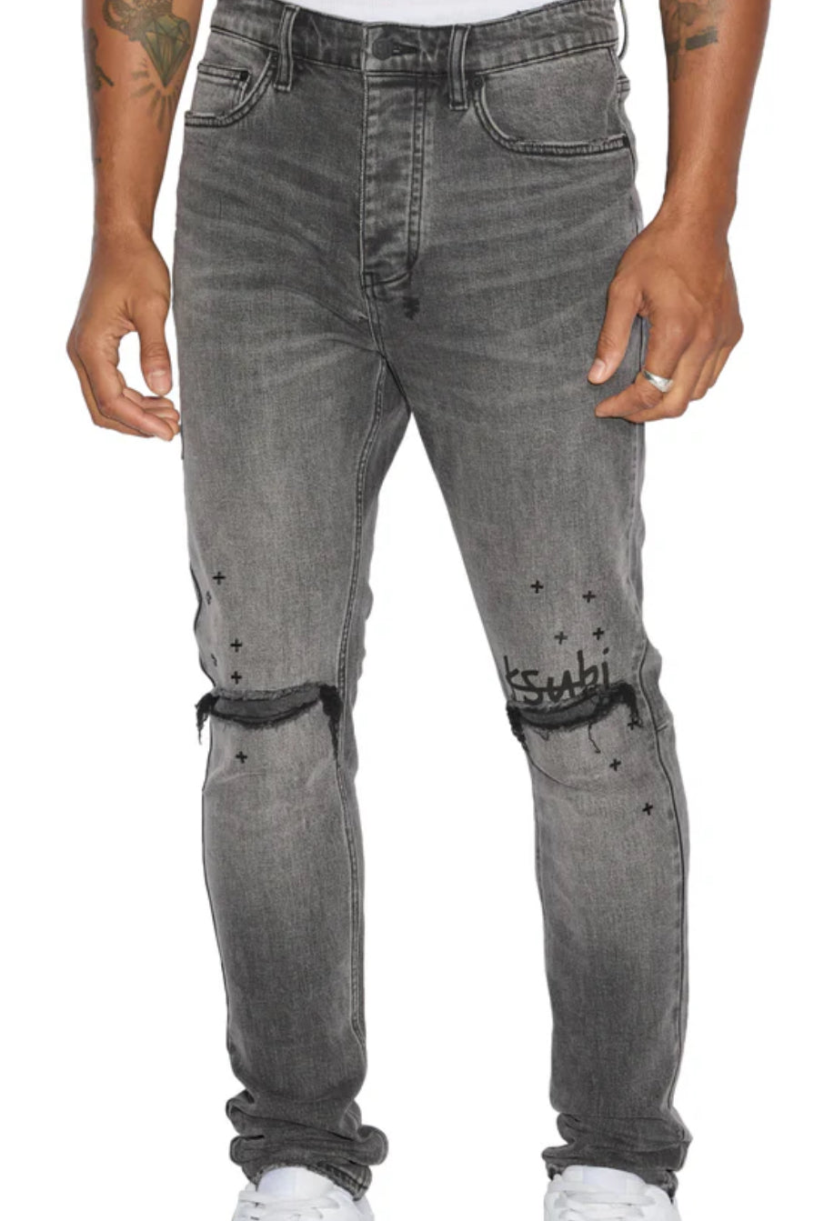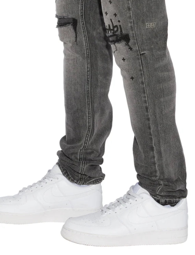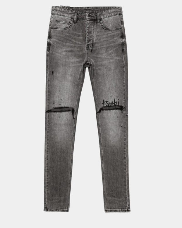 The Chitch Sinners 1999 is a slim tapered jean with a mid-long rise waist, made from a premium comfort stretch light stone washed denim.This jean features knee deconstruction with the Ksubi 1999 logo screen printed at the knee and randomised cross hotfix details. Finished with signature t-box and 4x4 embroidery and Ksubi branded hardware.