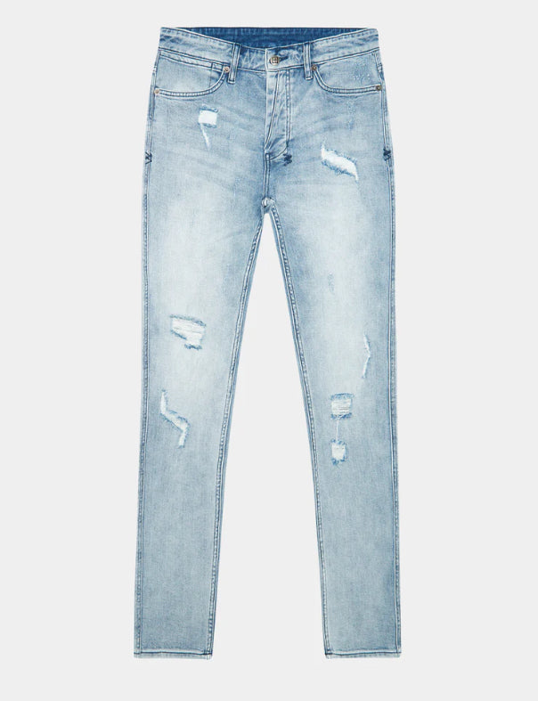 The Van Winkle are a mid rise, skinny fit jean constructed from of a heavy duty, premium stretch denim sourced from Turkey featured in a vintage colourway. These jeans are detailed with slight distressing and grinding, classic five pocket styling, signature cross embroidery at the reverse and removable back pocket tag.