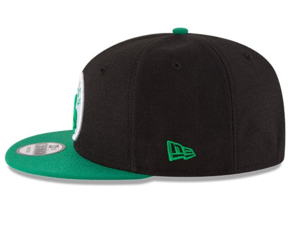 The Boston Celtics Two Tone 9FIFTY Snapback features an embroidered Celtics logo at the front panels with a team color NBA logo above the snapback closure at the rear.