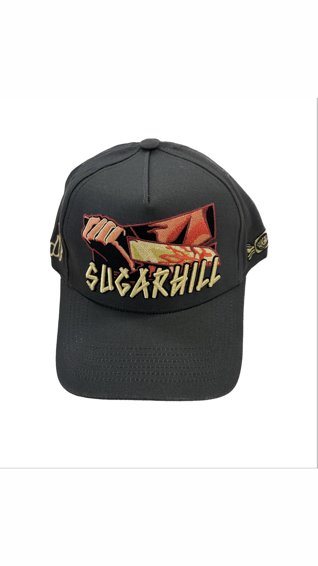 SUGARHILL embroidered design on front and sides