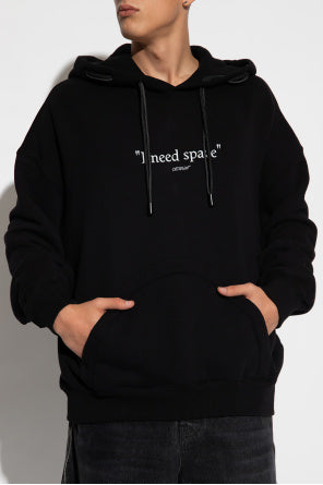 Black sweatshirt with a drawstring hood from Off-White. Made of cotton, this style showcases a printed logo and lettering on the front, a kangaroo pocket, long sleeves and ribbed trims on the bottom hem and cuffs.