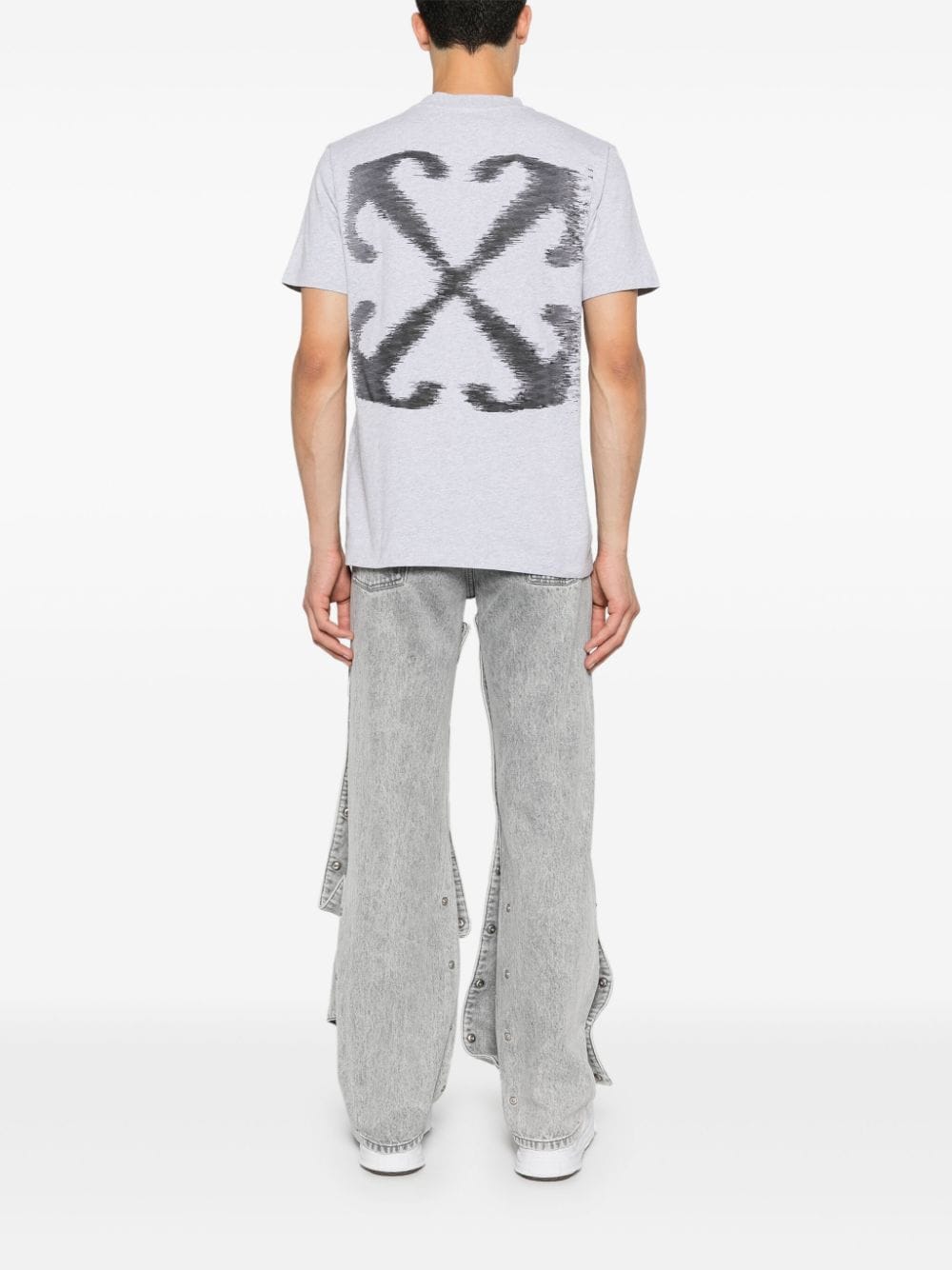 light grey cotton jersey texture mélange effect crew neck short sleeves rubberised logo detail signature Arrows motif straight hem