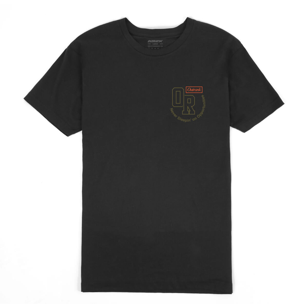 Black Premium short sleeve tee in 5.5 oz., soft-washed, 100% combed ring-spun cotton. Embellishment: "Prepared At All Times" Screen print