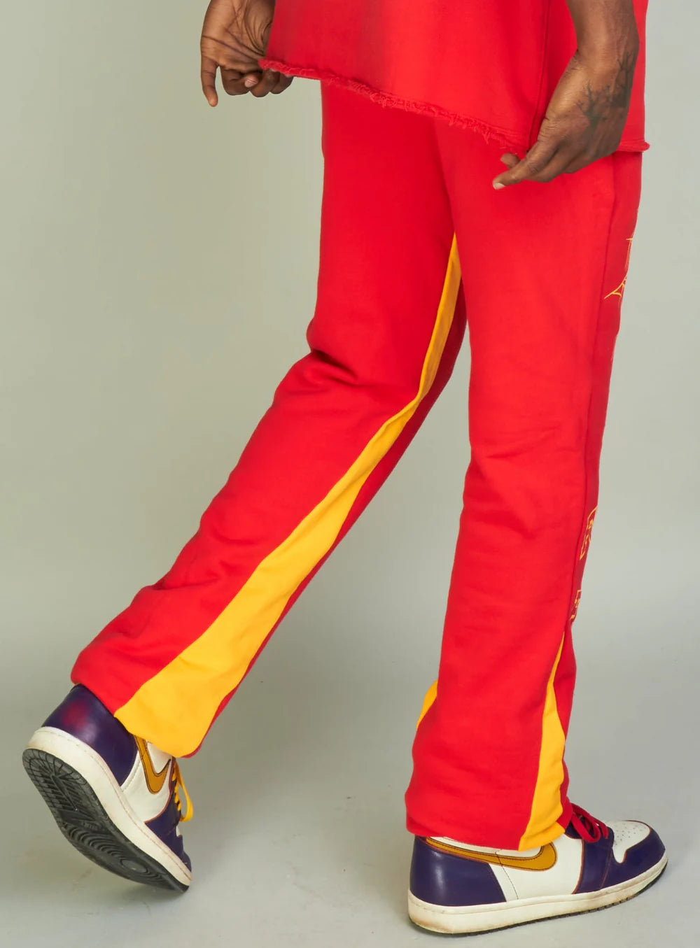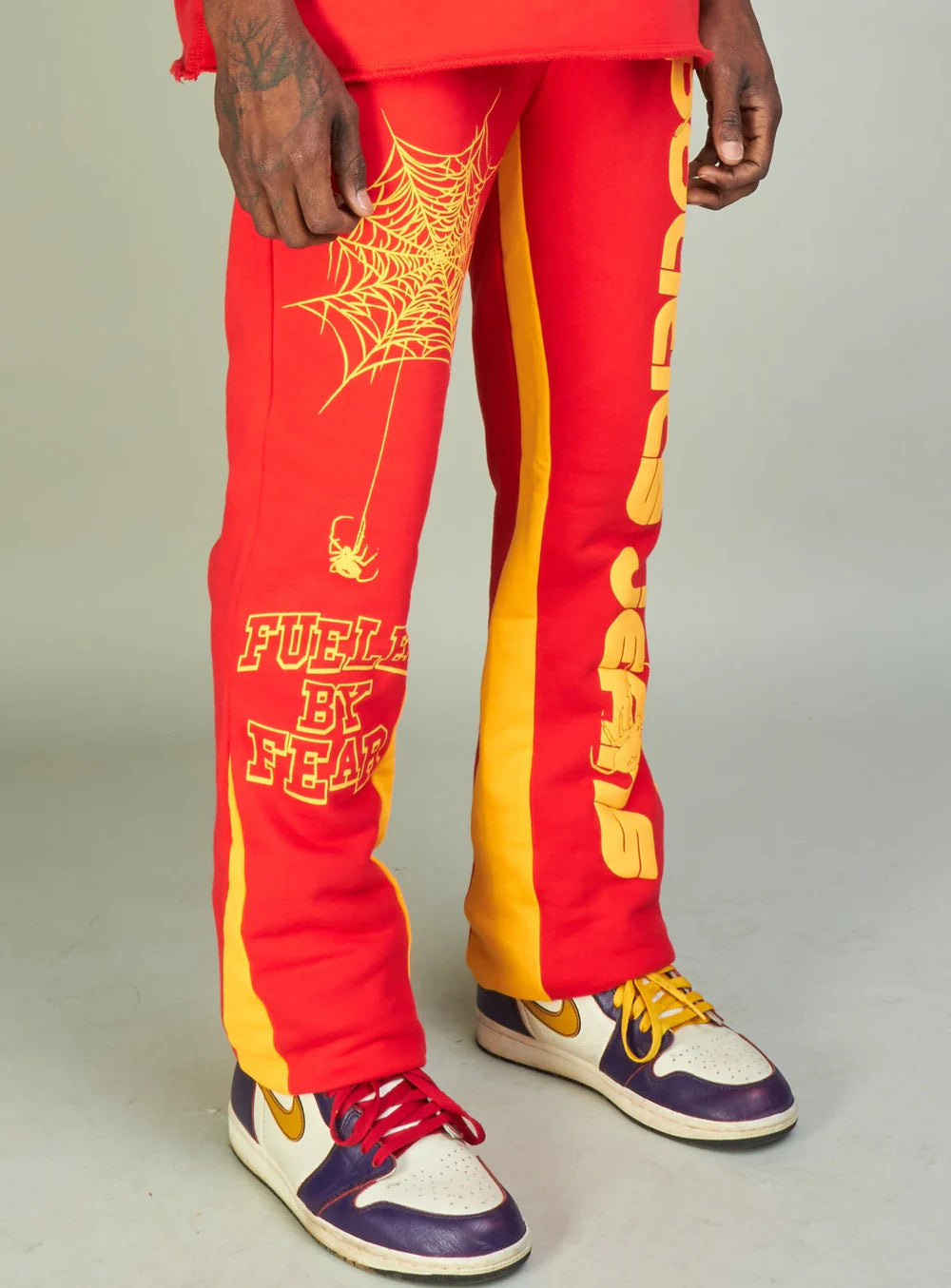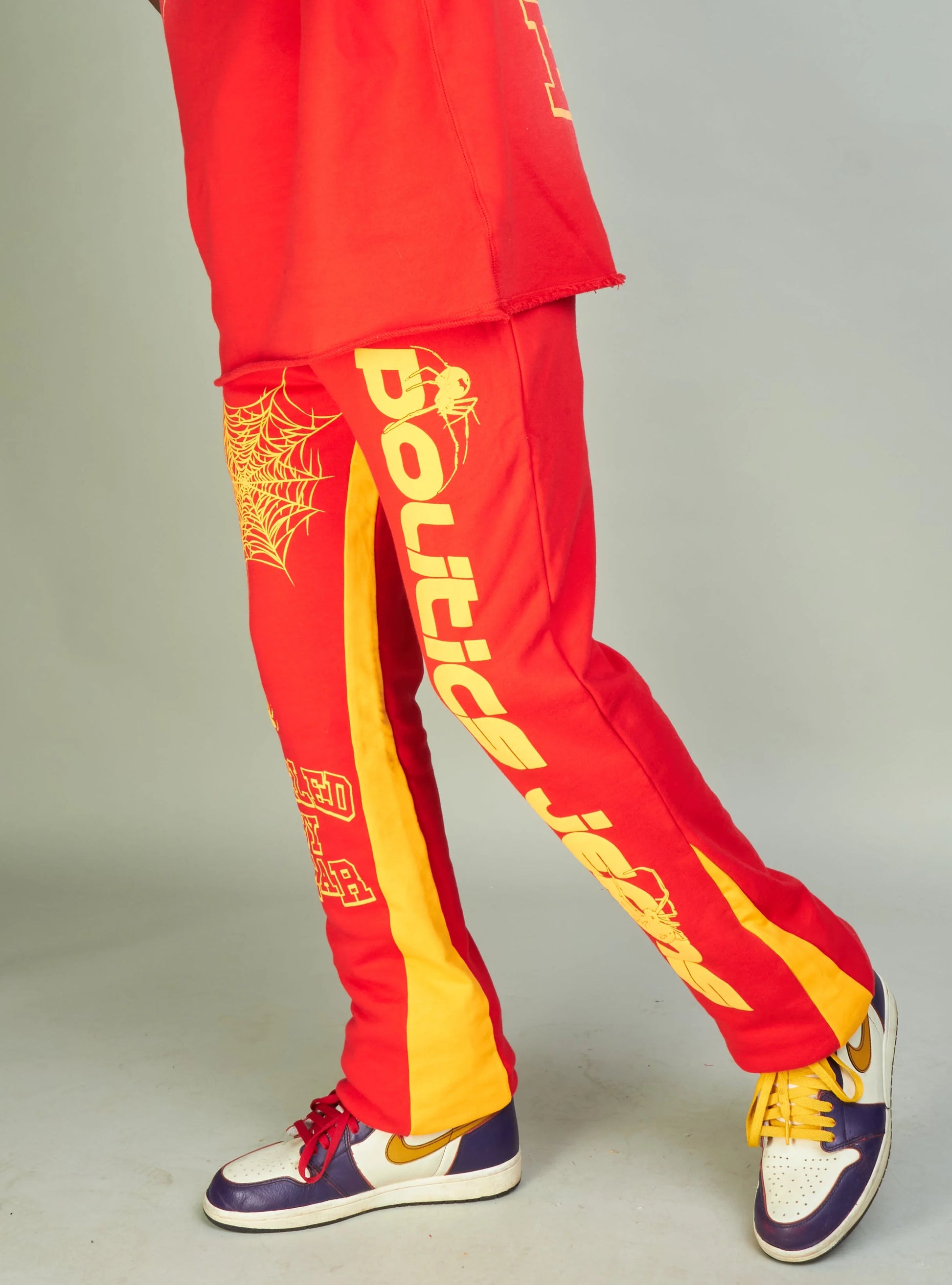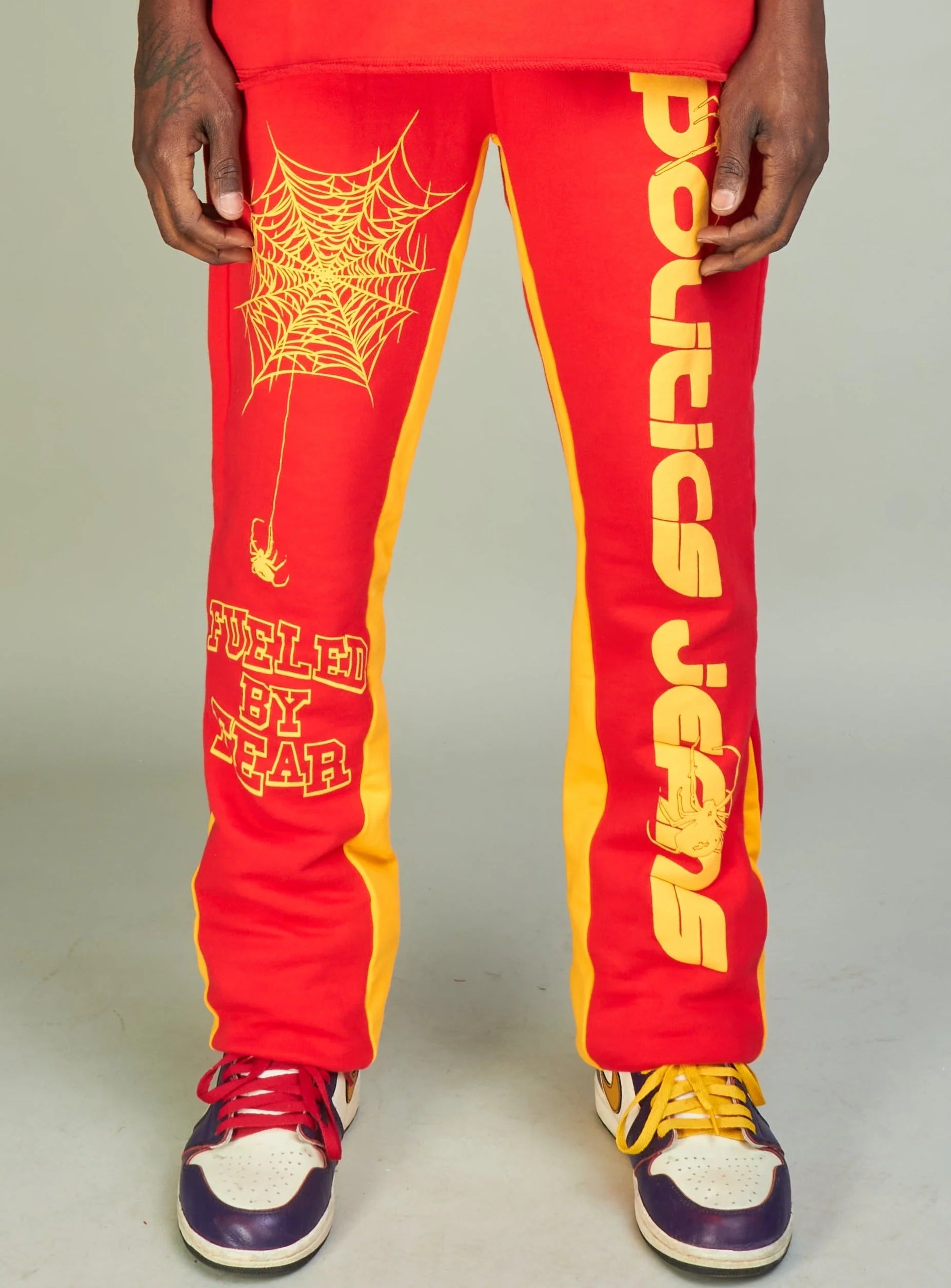 Stay comfortable and stylish in our Politics Sweatpants - Isaacs in Red And Orange. Featuring a stacked fit and fuelled by fear design, these 100% cotton sweatpants are perfect for making a bold statement.