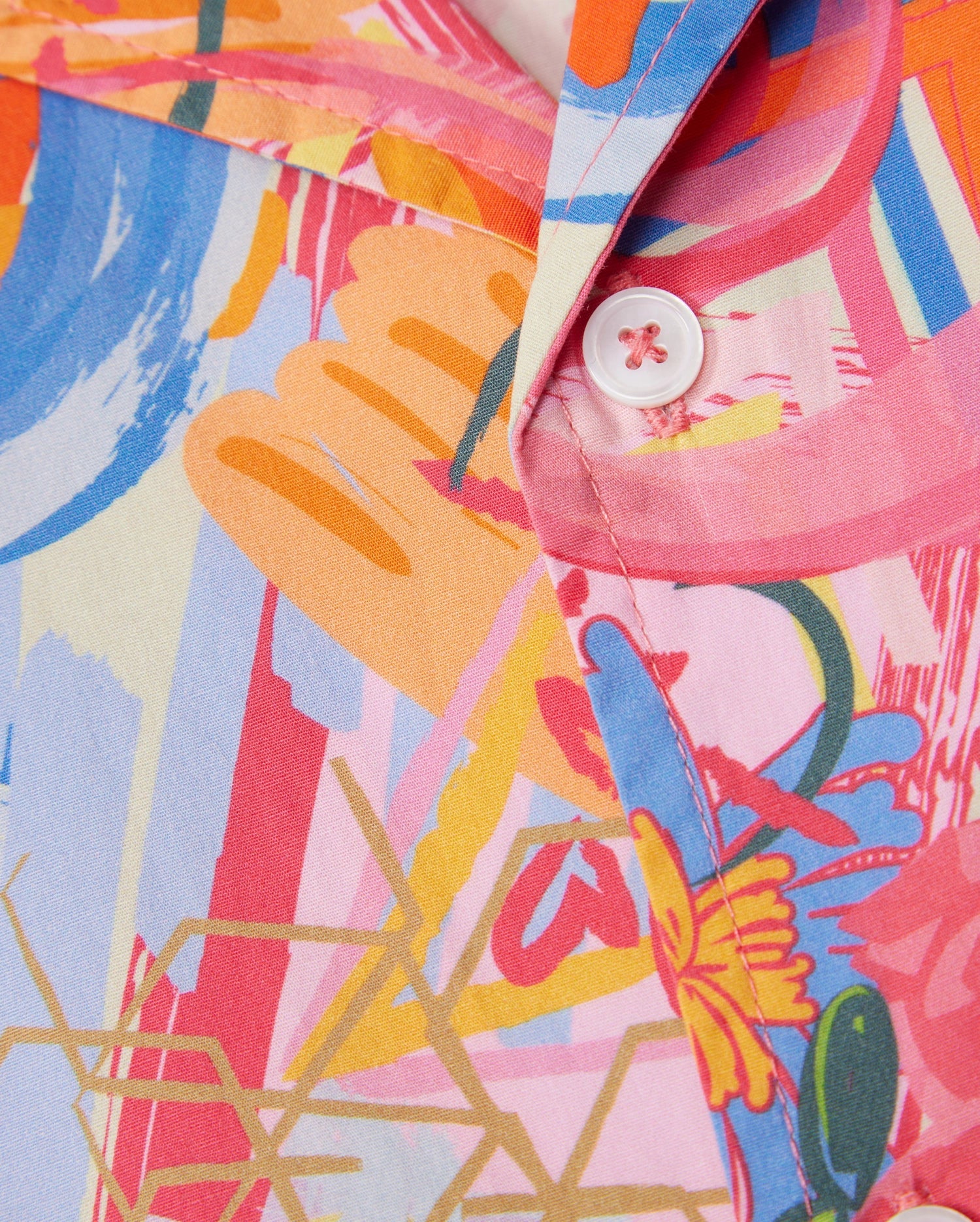 Boldy adorned in a kaleidoscopic graphic print, the men's Benton shirt has an open camp collar and mother-of-pearl buttons—and it's the perfect sunlit-statement style.