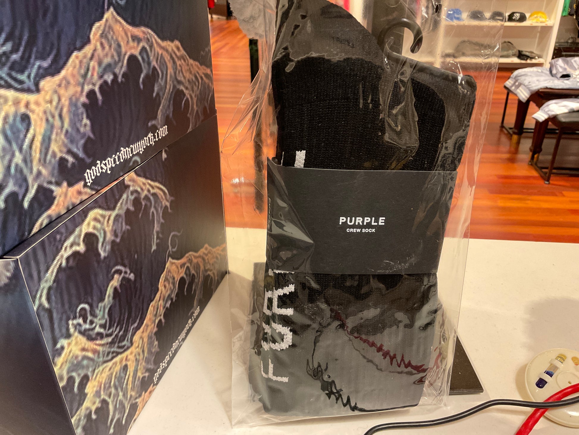 A core essential for every day, this black ribbed crew sock is printed with Purple Brand logo lettering.