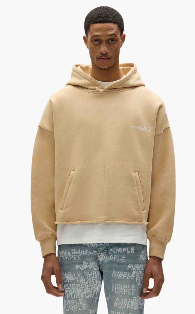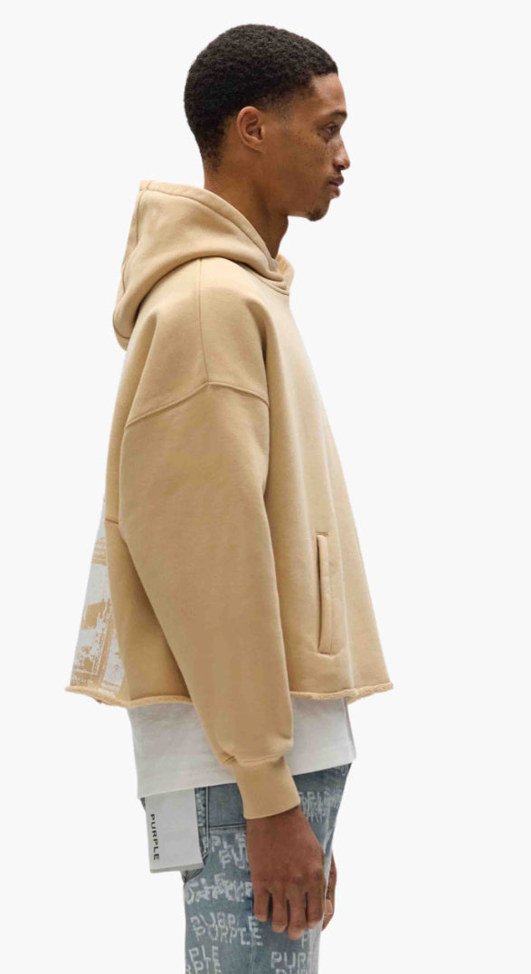 This hoodie is defined by Purple Brand logo lettering on the left chest and a newsprint graphic across the back. It’s cut for an oversized fit from beige heavyweight fleece and features a large kangaroo pocket as well as ribbing at the cuffs and hem.