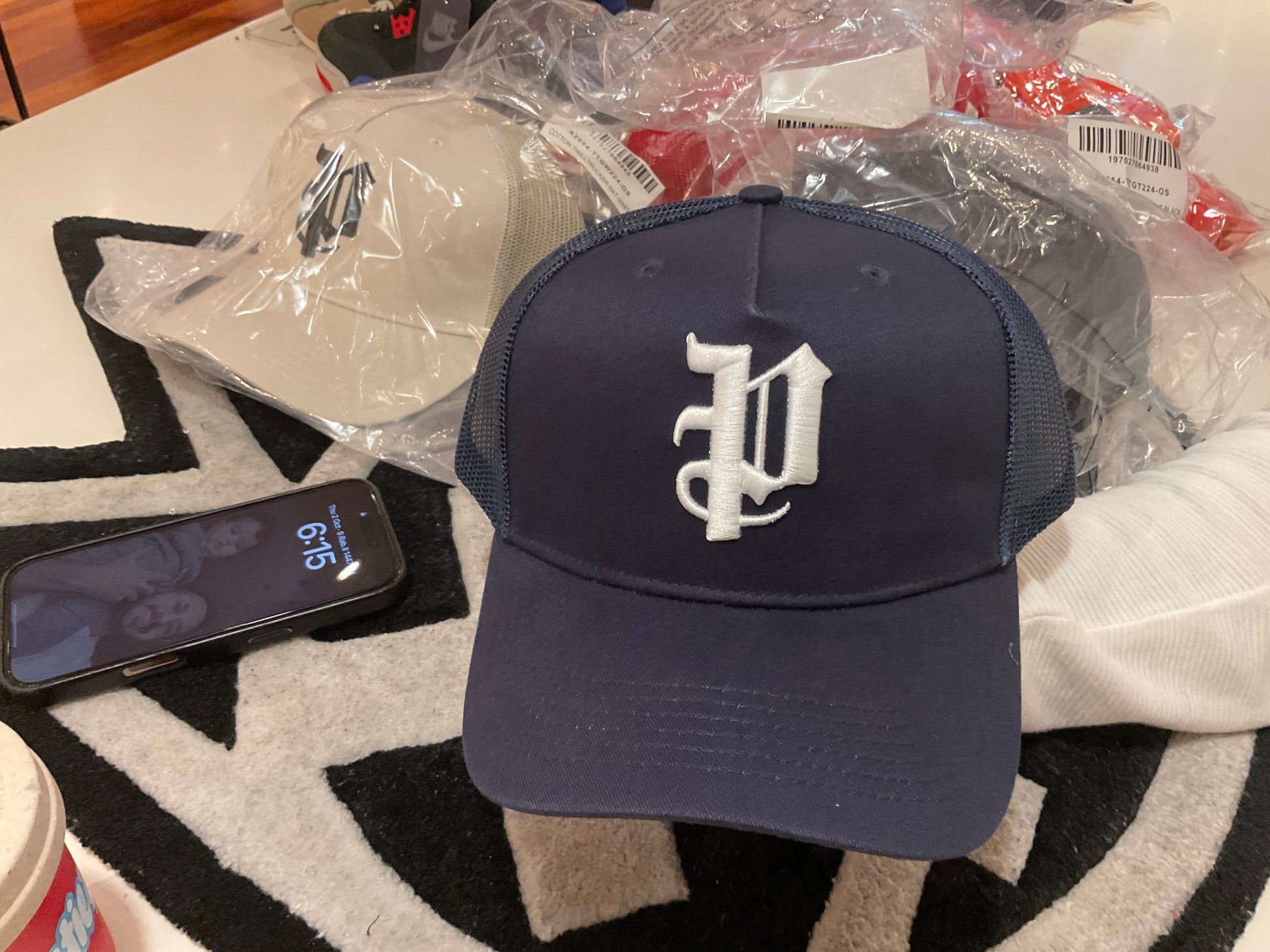 Featuring a gothic Purple Brand monogram, this red cotton twill trucker hat has a classic five-paneled design with a curved visor and tonal stitching.