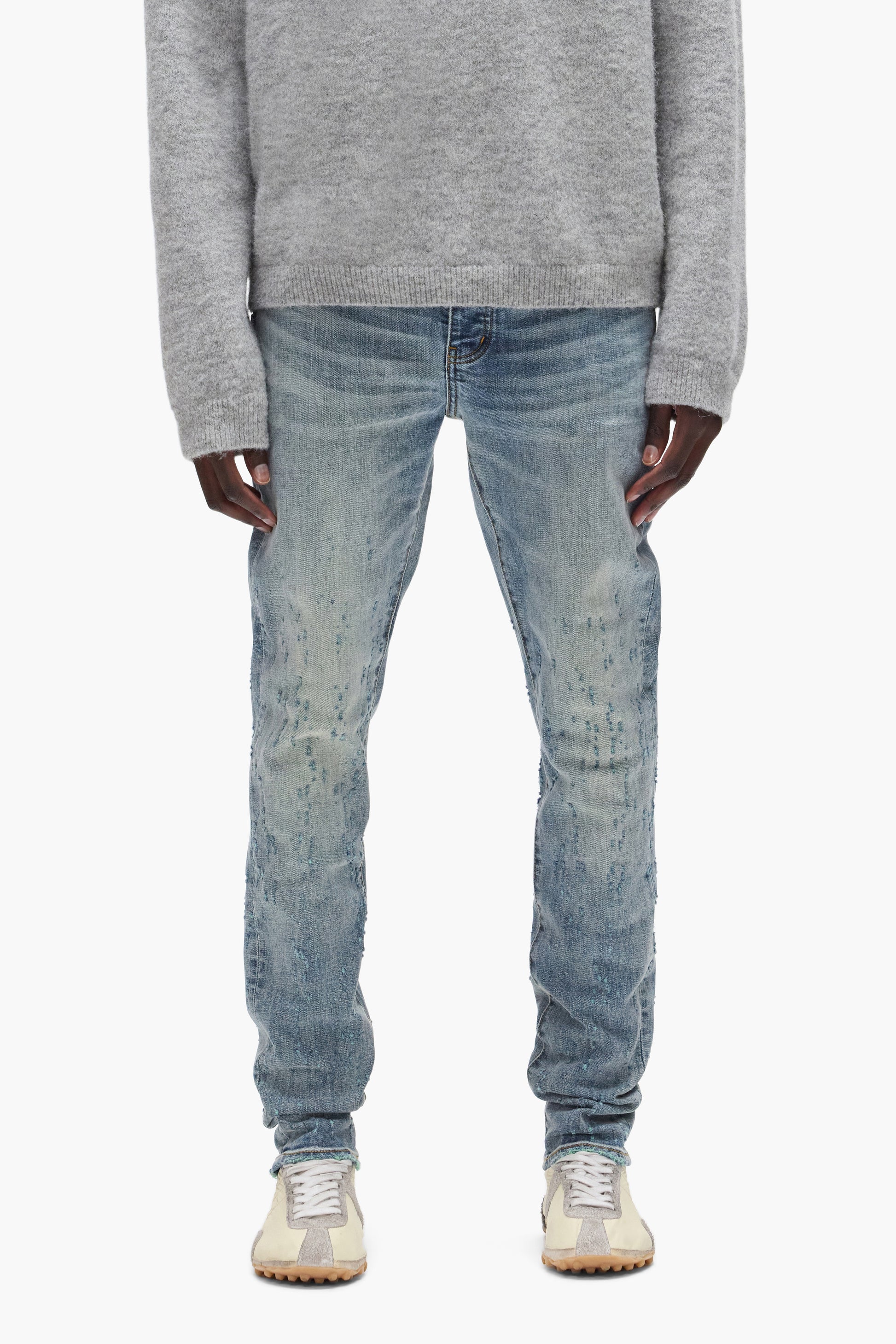 All Purple jeans feature unique washes and dye methods and are finished individually by hand - no two pieces are the same.