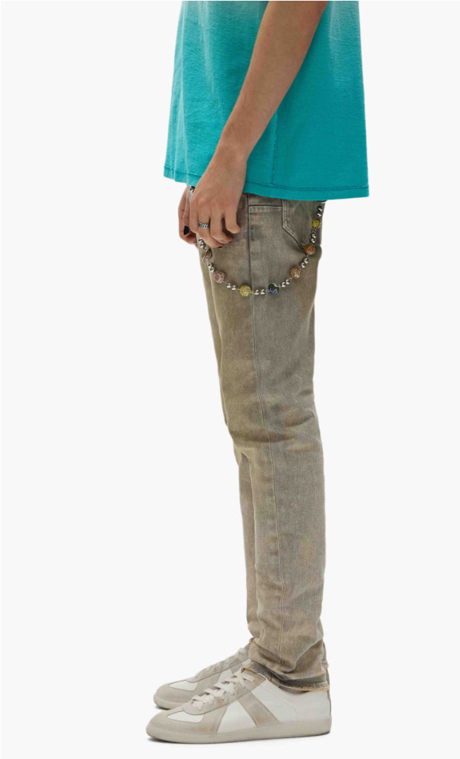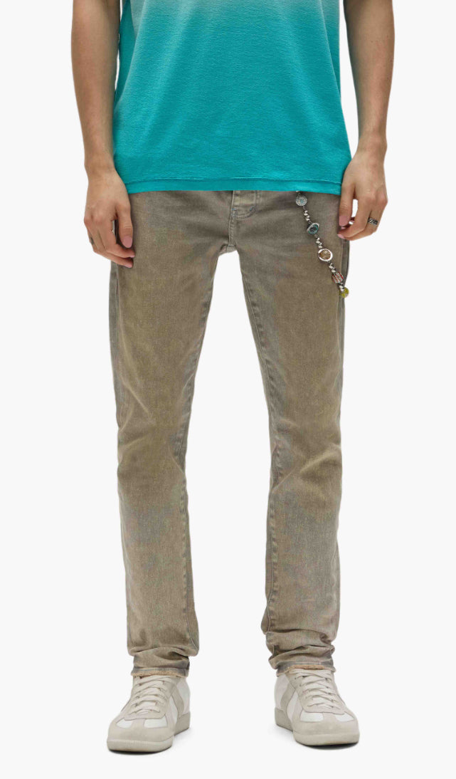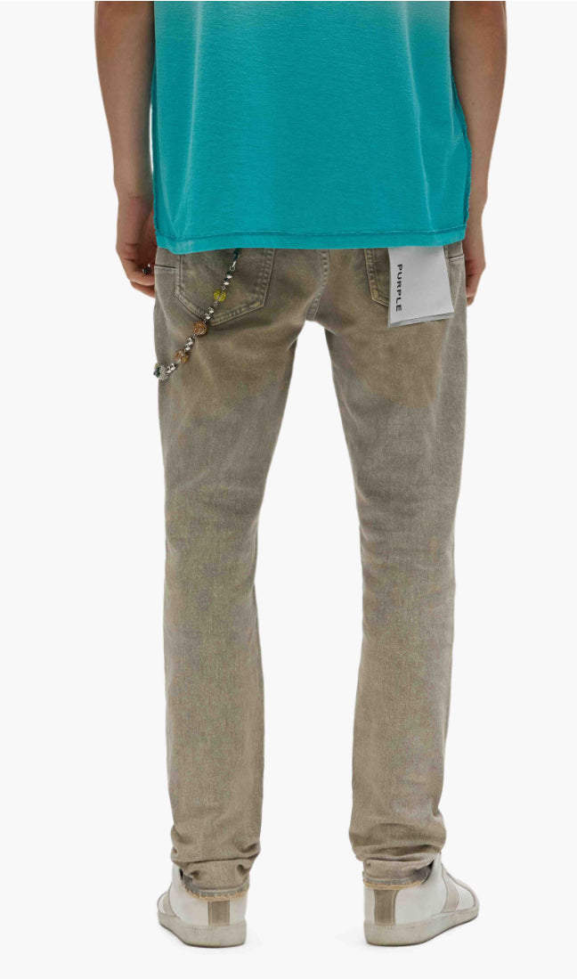 Our P001 is a low-rise skinny men’s jean, crafted from premium stretch denim with classic five-pocket construction that includes a button-fly closure and reinforced belt loops as well as hidden rivets and an inner lining on the back pockets for durability. It’s fitted through the thigh to the ankle for a classic skinny taper, and comes overdyed in a dirty wash with hand-distressing. A custom Purple cowhide leather patch, a back pocket flasher and a logo hangtag lend signature branded finishes.