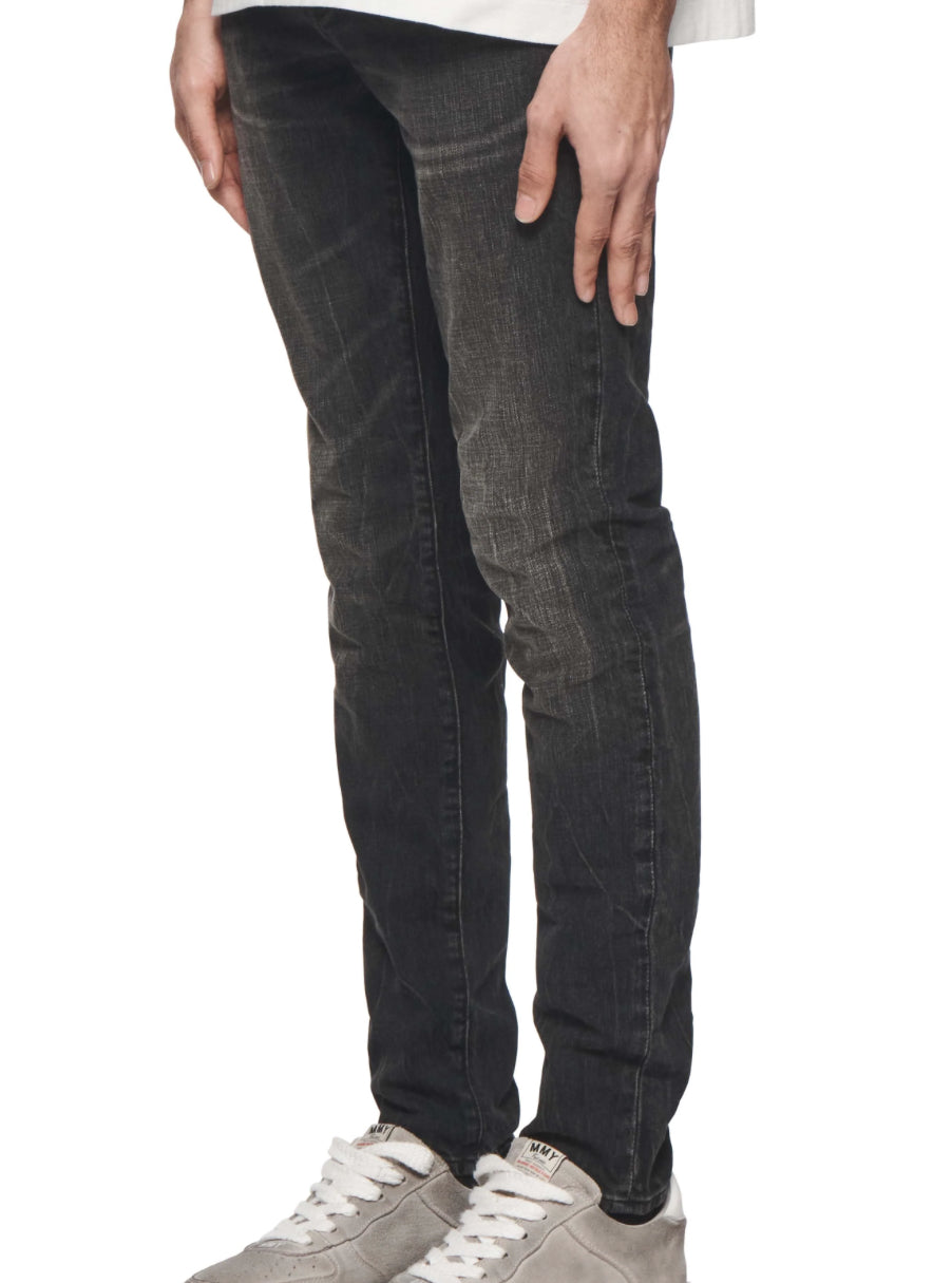 Crafted from premium black stretch denim, this low rise skinny is faded by hand for a vintage look.