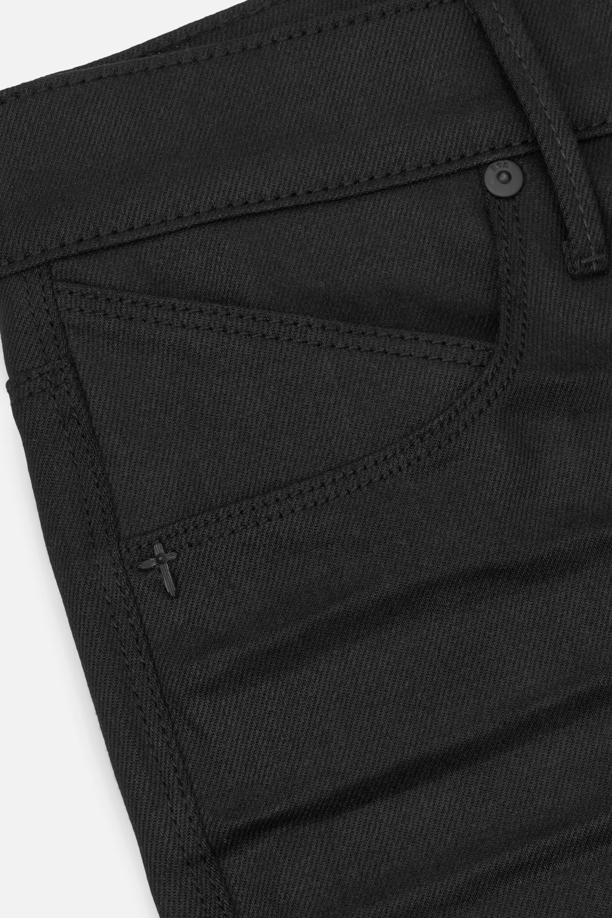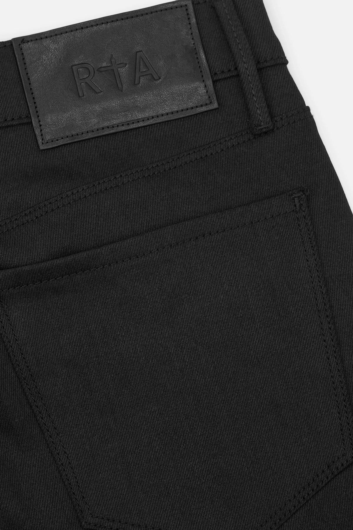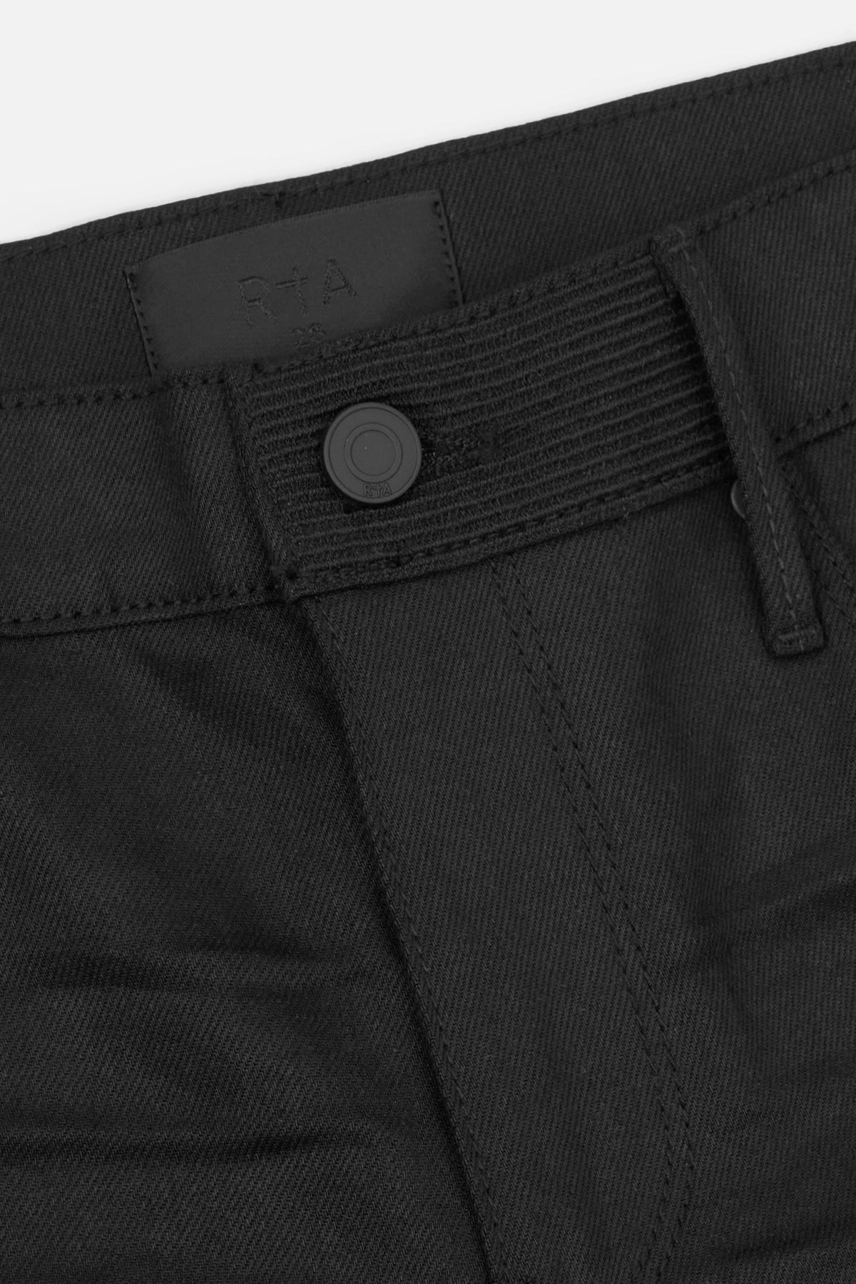 The RTA Bryant jean is a classic skinny fit in black premium Japanese denim with embroidered logo detailing on front and signature RTA crosses down the back legs. This denim style has some stretch, it will be tighter when you first try on and will relax as you wear them in.