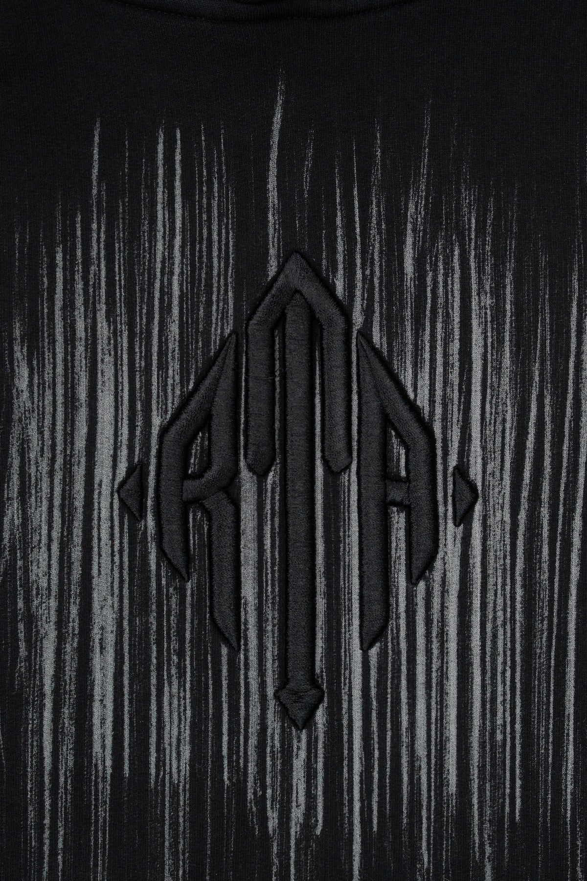 The Jordan Hoodie in Black Etched Monogram is made from 100% Cotton. This hoodie is designed with toggle drawstrings at the waistband for an adjustable fit and features a monogram RTA logo with contrasting etched design.