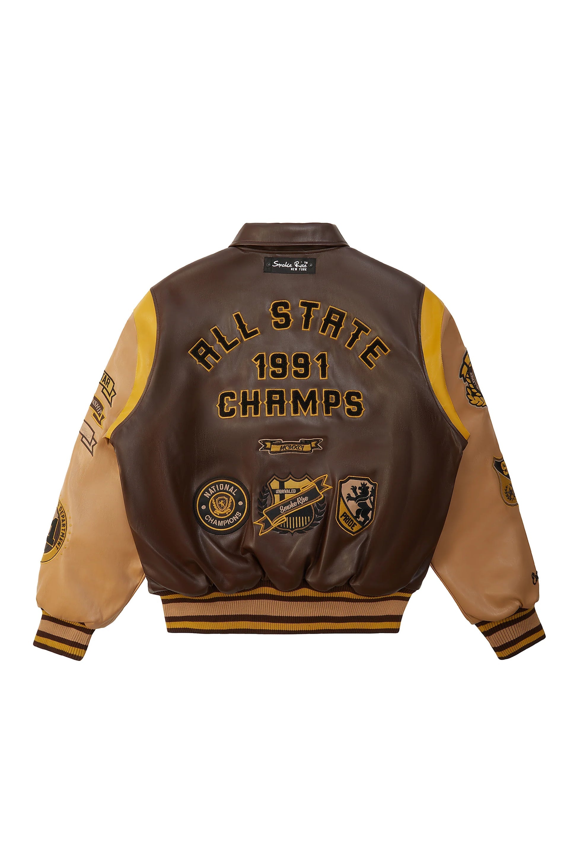 SMOKE RISE VEGAN LEATHER VARSITY JACKET - ww23793