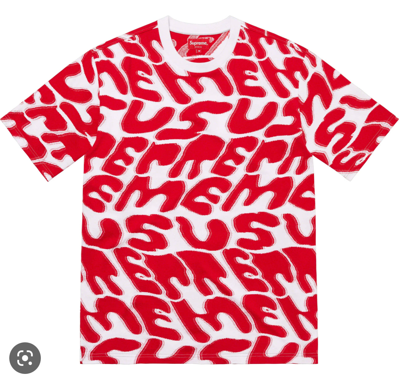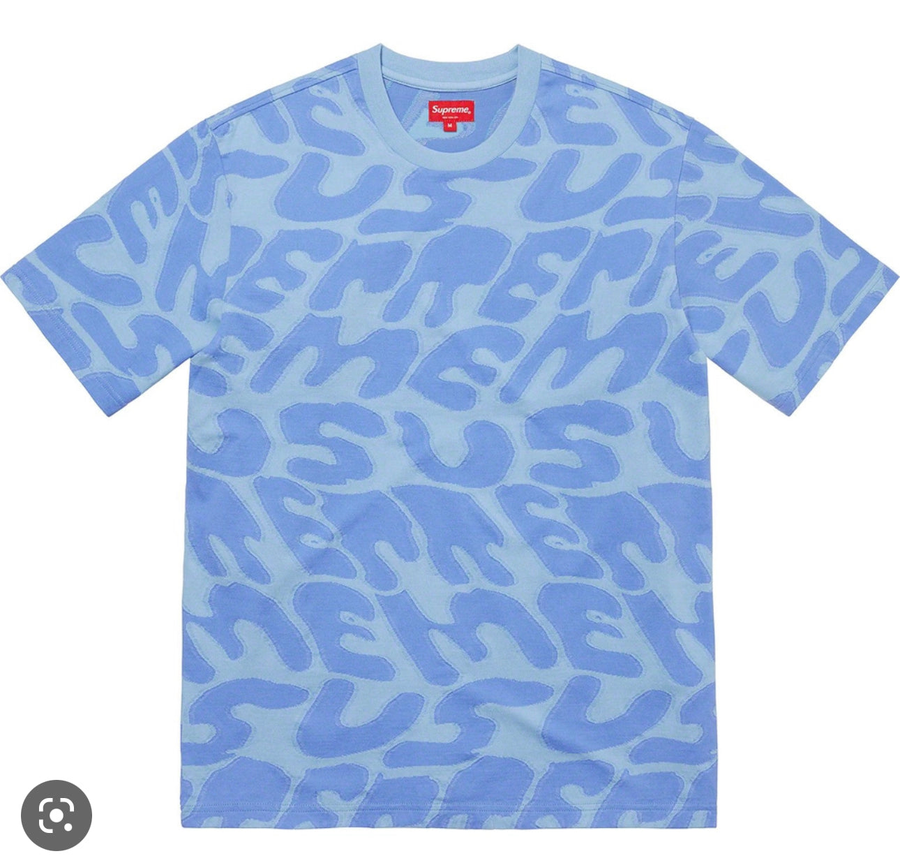 All cotton jersey crewneck with intarsia knit logo pattern.