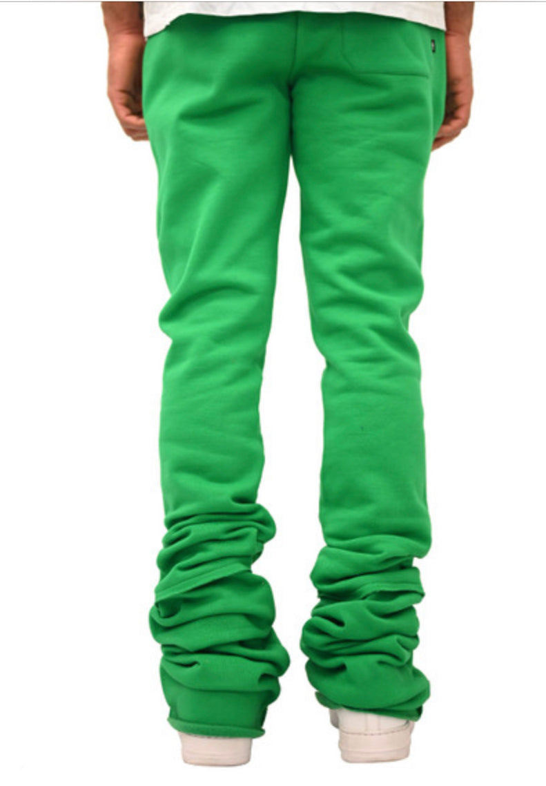 Logo super-stacked sweatpants have an extra-long stacking inseam length and wide flared leg opening with a drawstring waistband. These fleece joggers are available in black, gray, Lt. Blue, green, pink red, navy, orange and pink fleece colors .