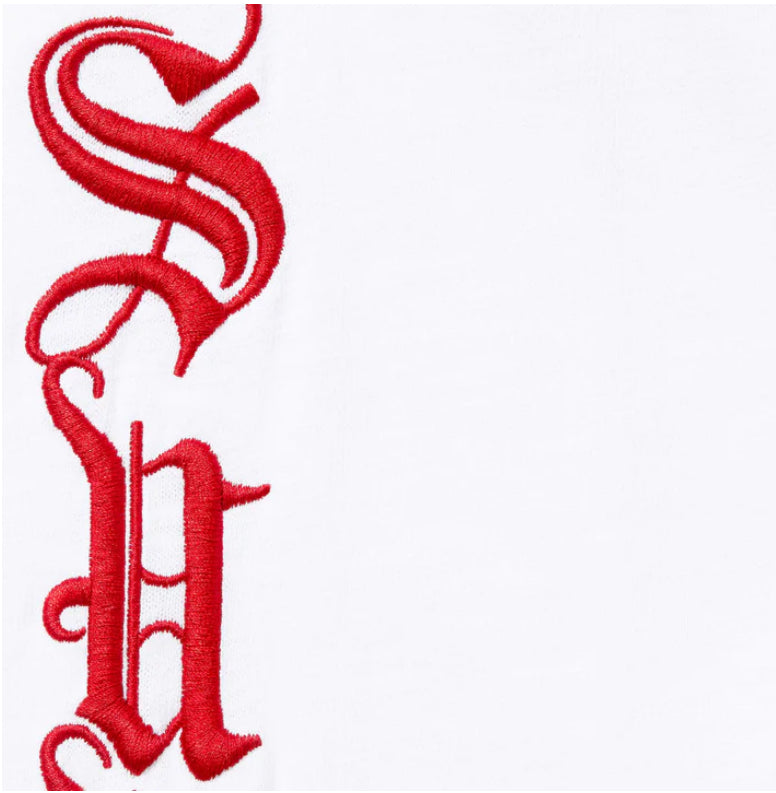 All cotton slub jersey crewneck with embroidered logo on sleeves. Athletic label at lower front.